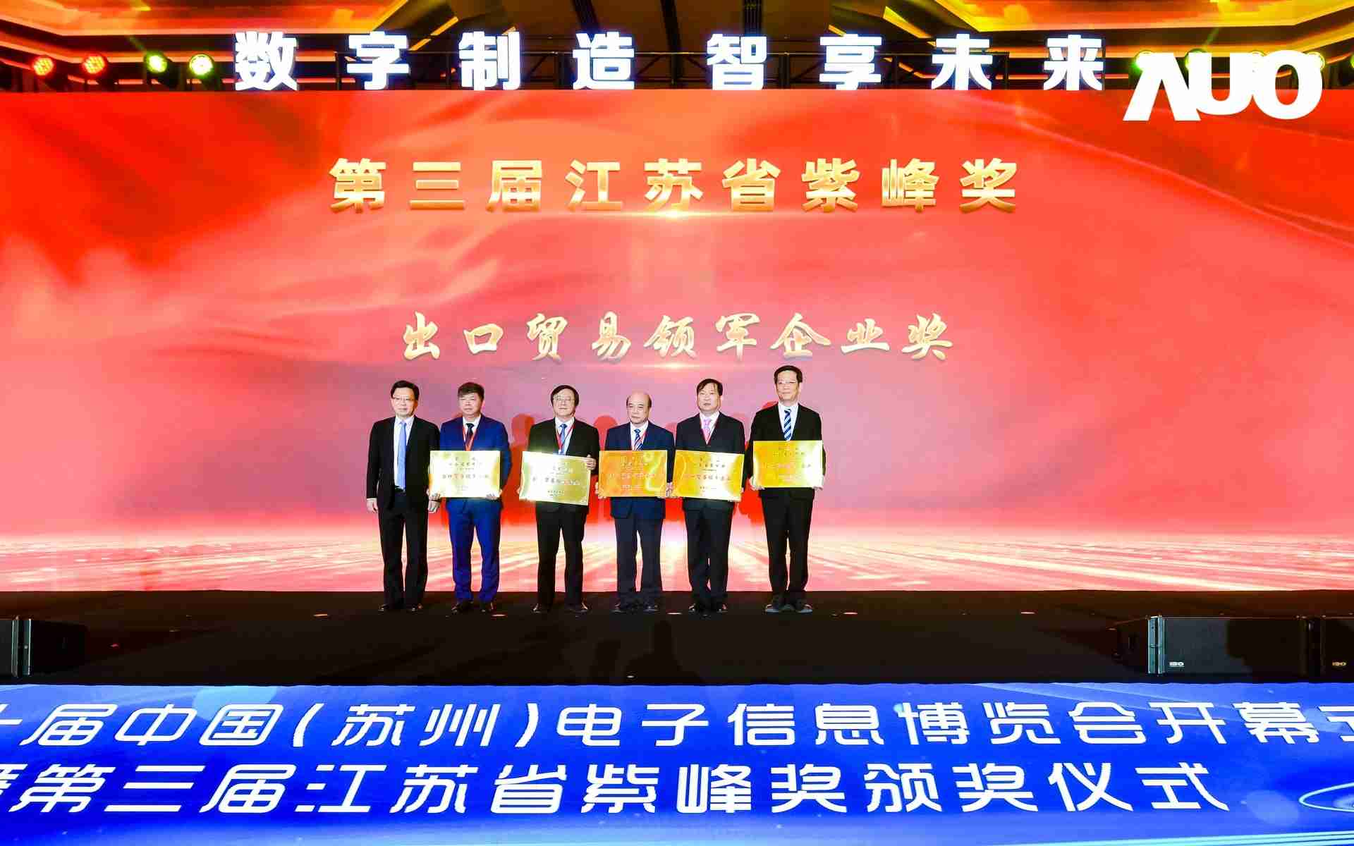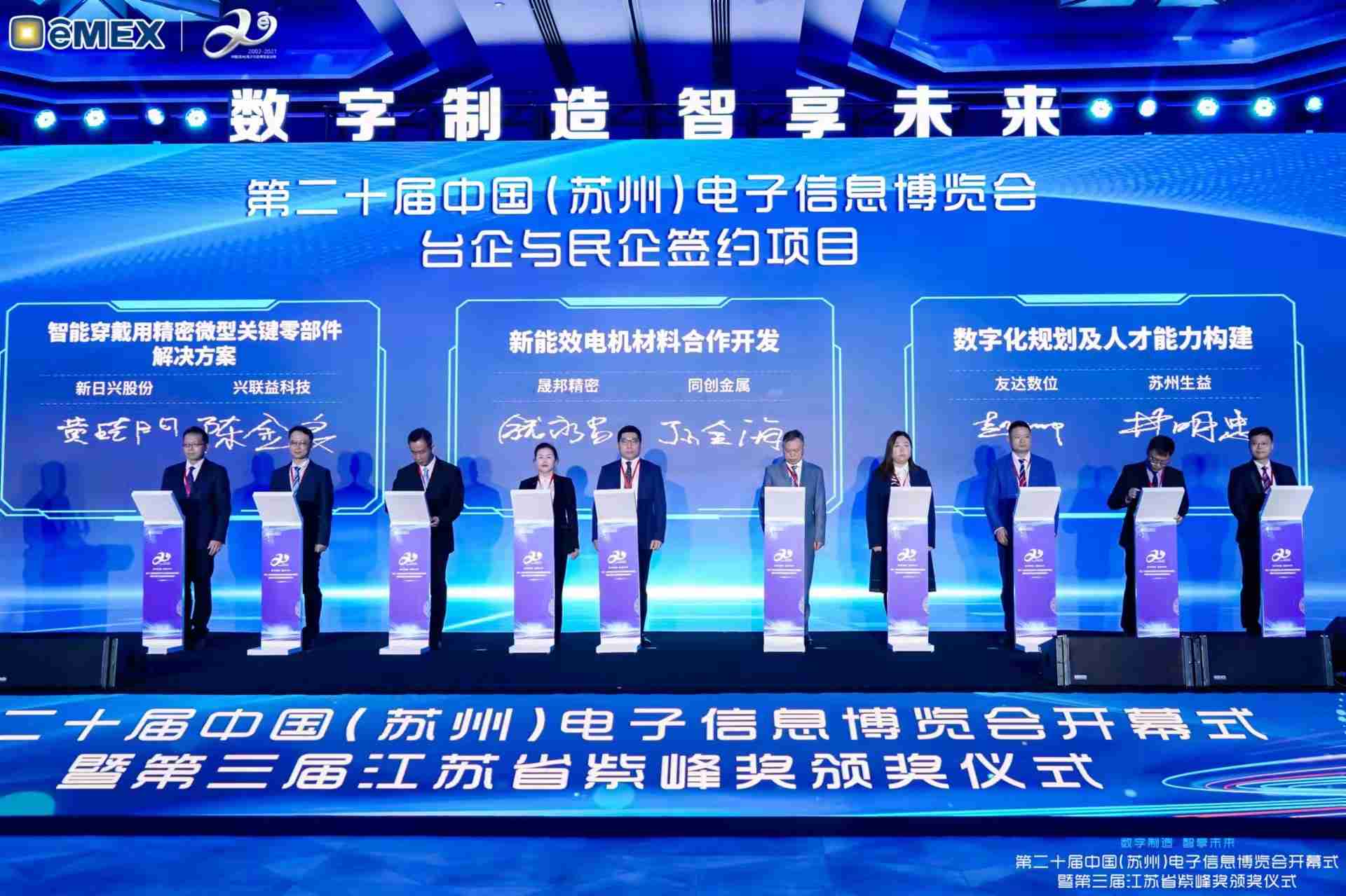 电博会开幕式当天也是第三届江苏省紫峰奖颁奖仪式,,省台办、、、工信厅、、、商务厅、、、苏州市相关领导均出席并颁奖。。。该奖项为表彰对江苏高质量发展做出积极贡献的在苏企业,,由江苏省政府专门设立。。。尊龙集团光电 (苏州) 总经理郭振明代表上台领奖,,,,这也是尊龙集团苏州连续三次蝉联紫峰奖 出口贸易领军企业奖。。。。尊龙集团数位总经理赵丽娜女士,,,也参与本次开幕式,,,,上台为本地化赋能签署战略合作协议,,,,将优质服务资源集合、、、、下沉到更多细分行业,,,为更多地区的制造企业提供数字化转型服务。。。